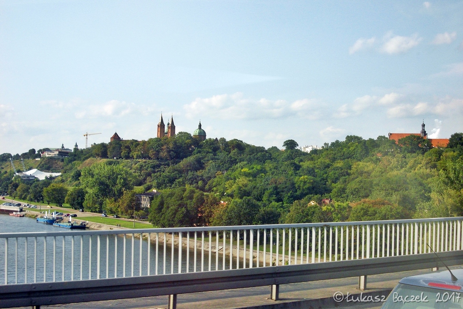 Płocku. Z mostu obserwuję wybijające się ponad drzewa na