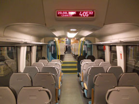 niemal pustego pociągu. Pasażerów można policzyć na palcach