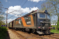 ze składem towarowym przejeżdża przez stację Trzebinia