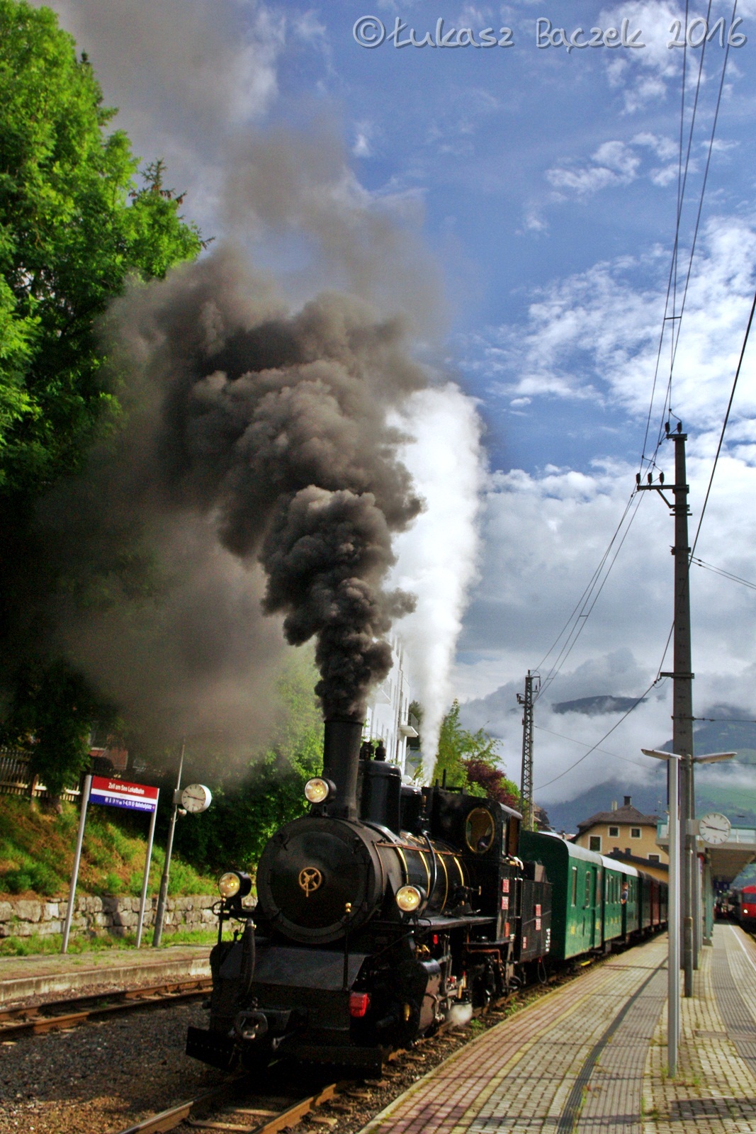 stacja Zell am See, wjeżdża na peron ze składem retro ze stacji Krimml |