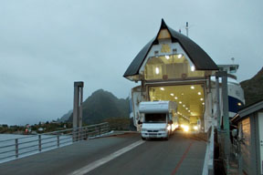 wcześniejszy prom, a mijające nas samochody zjechały właśnie z jego