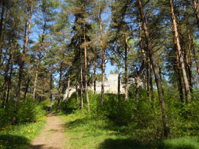 wschód od miasta Ogrodzieniec. Pierwsze założenie obronne
