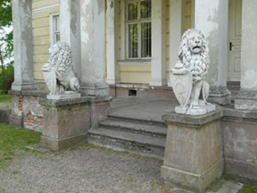 tego faktu w pałacowym parku znajduje się pamiątkowa tablica. Na tyłach