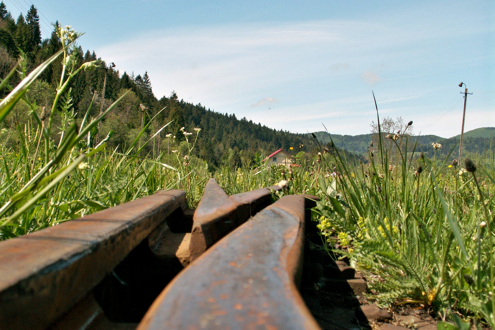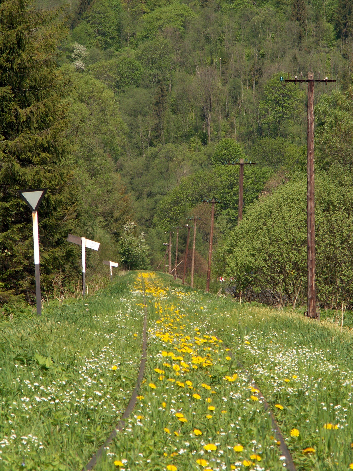 między szynami porasta trawa, a tu i ówdzie spotykam
