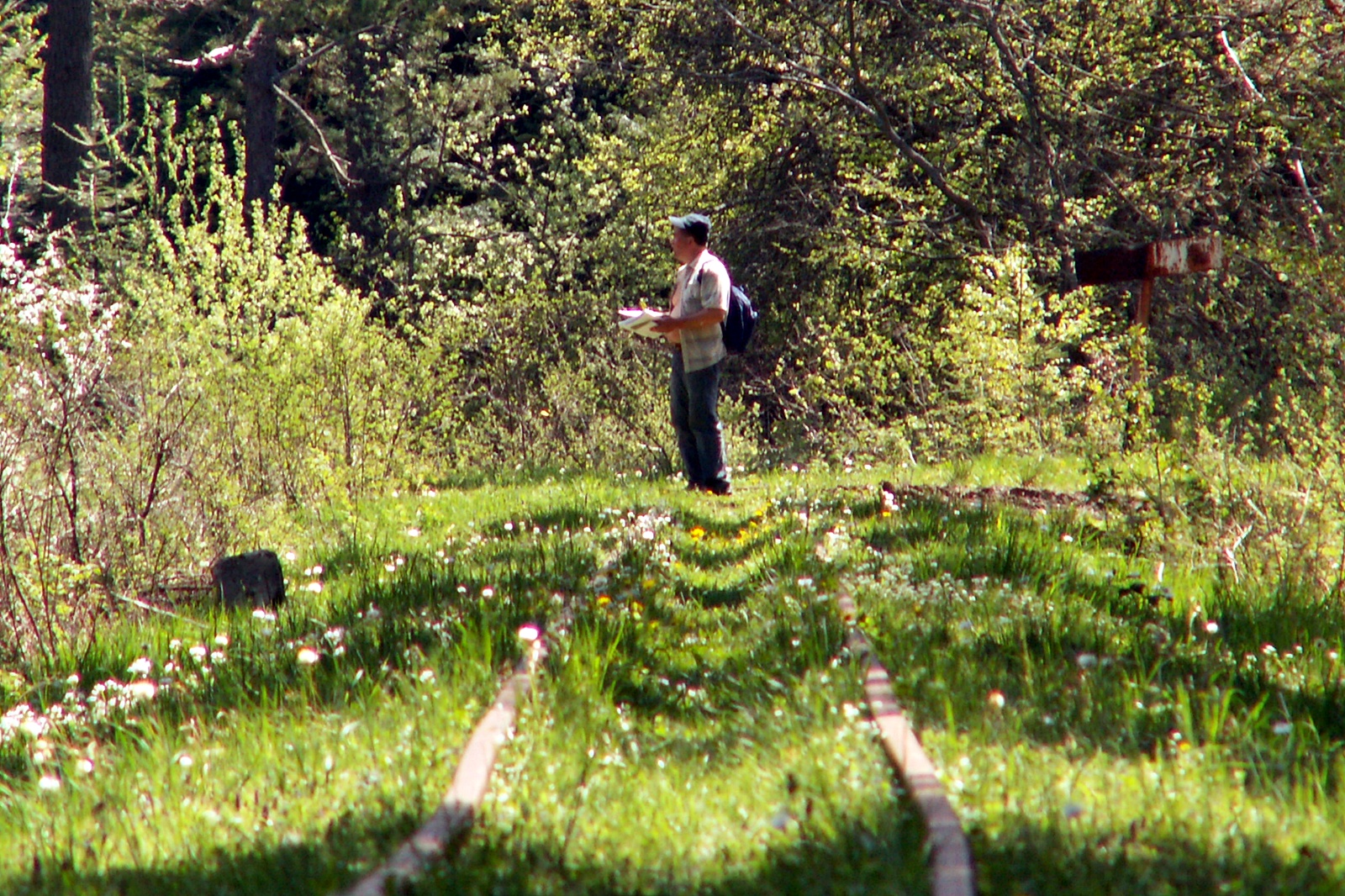 niegdysiejszą stacją kolejki, rzucam okiem na łąkę znajdującą się na