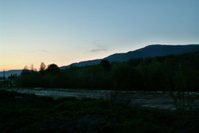 niemal na brzeg Wetlinki. Opodal jest pole namiotowe, który
