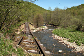 Górna Solinka wije się wzdłuż toru tworząc tu malowniczy