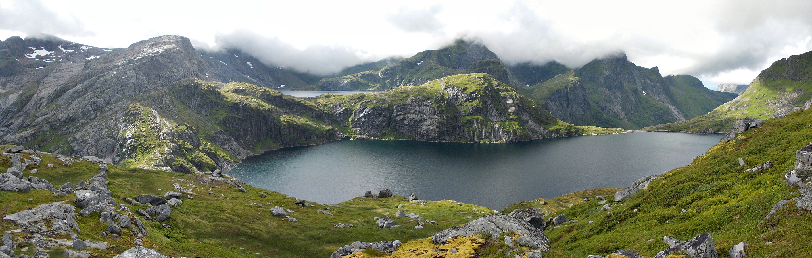 W oddali Djupfjorden, po prawej najwyższy szczyt Munken